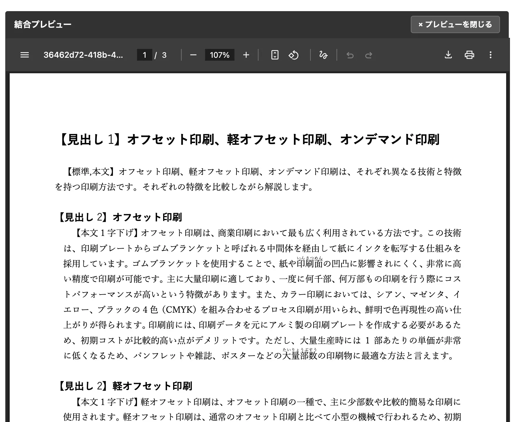 プレビュー画面からダウンロード、もしくは直接プリントすることも可能です。